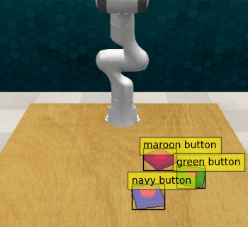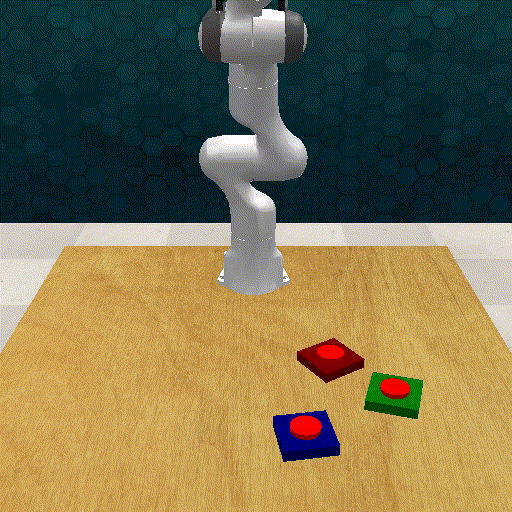 Act3d with no guidance: the policy fails to press the last button (blue), but manages to correctly approach the first 2 buttons reaching them from above with the gripper closed.